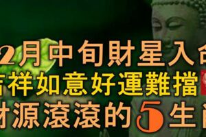 12月中旬財星入命,吉祥如意,好運難擋,財源滾滾的5大生肖!