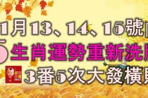 11月13、14、15號內,5生肖屆時運勢重新洗牌,3番5次大發橫財!