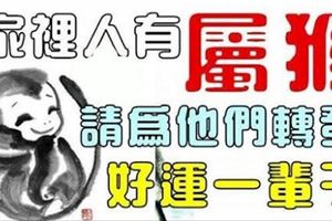 你身邊有屬猴的人嗎?請為他們接福,屬猴的人都看看吧,今天開始好運一輩子!