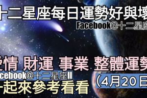 【12星座運勢每日好與壞】愛情、財運、事業、整體,一起來看看如何。(2018年04月20日)