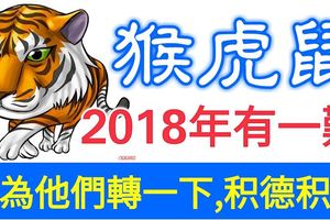 屬猴,虎,鼠的人,2018年有一難!請為他們轉一下,積德積福!