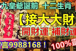 九皇爺誕前,十二生肖【接大大財】開財運補財運留言9988168!100%靈!