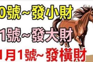 五大生肖:30號發小財,31號發大財,11月01號發橫財