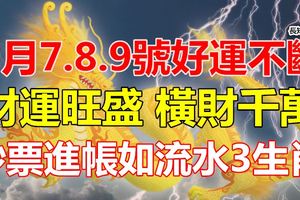9月7.8.9號好運不斷,財運旺盛,橫財千萬,鈔票進帳如流水3生肖