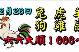 今天12月26日,每日旺財提示:龍豬雞羊,牛狗馬鼠。貴星旺財!萬事大吉留言26888必轉!