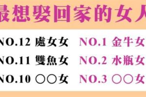 愛到想把妳帶回家疼愛寵愛!十二星座女在「男人最想娶回家」的排行中,妳位居第幾!