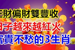 正財偏財雙豐收,事業蒸蒸日上,日子越來越紅火,富貴不愁的生肖