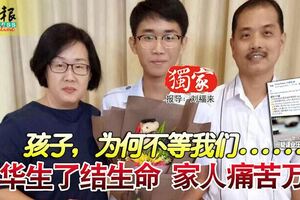 孩子,為何不等我們......留華生了結生命家人痛苦萬分