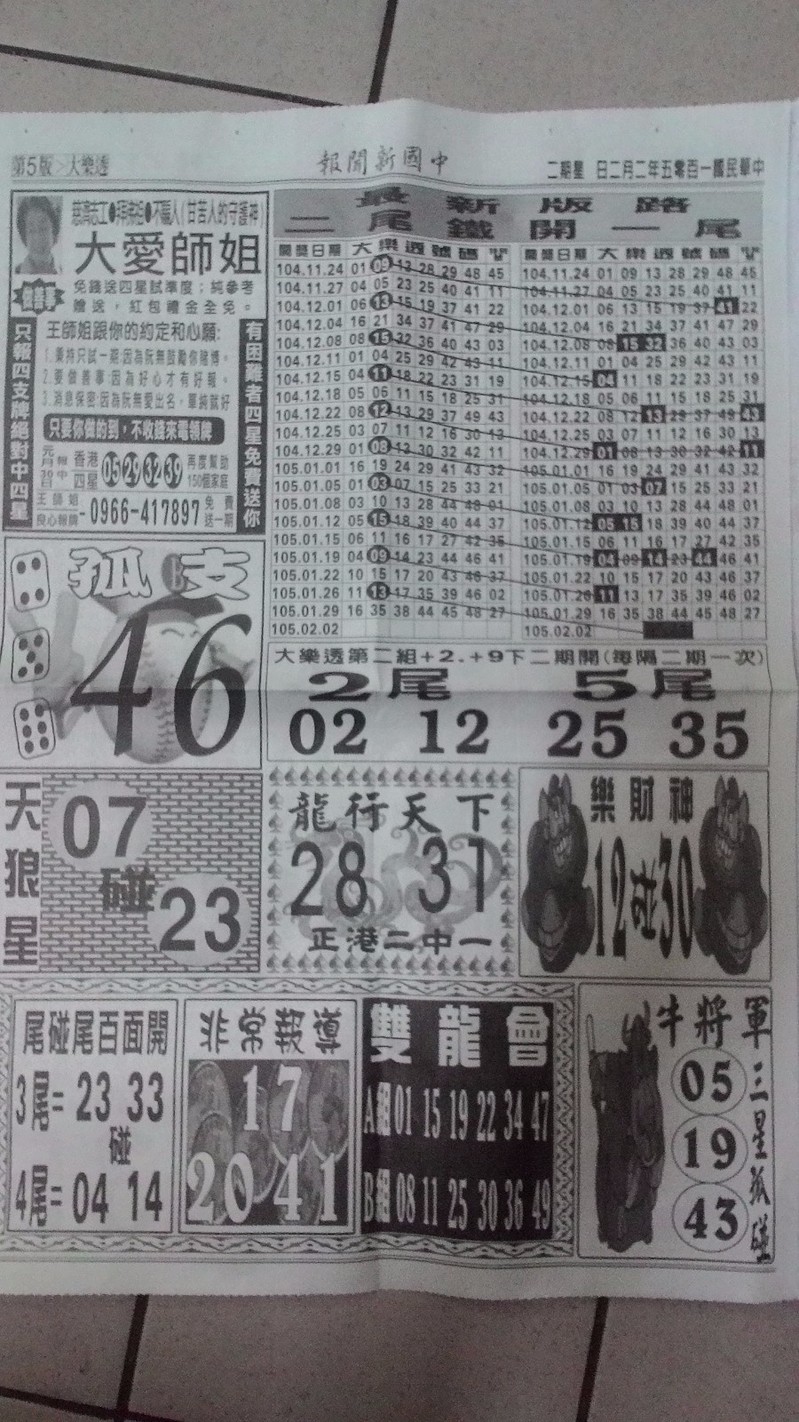 今彩539 2020/10/05 台北鐵報分享 供您參考