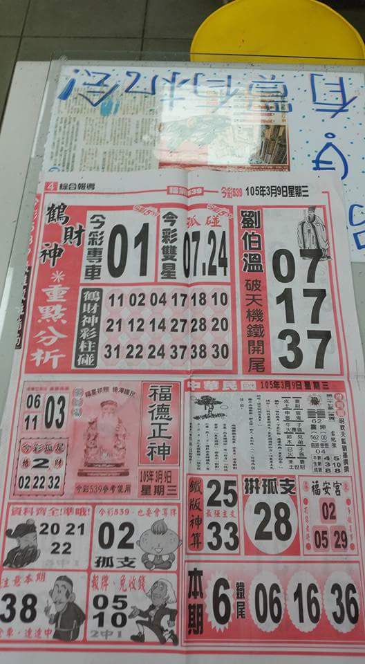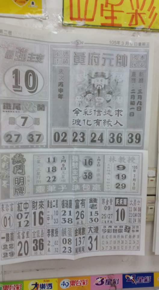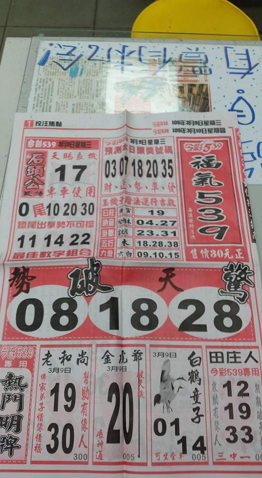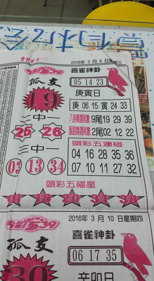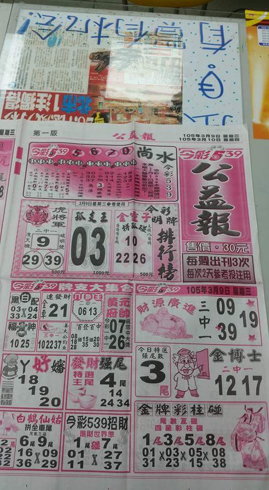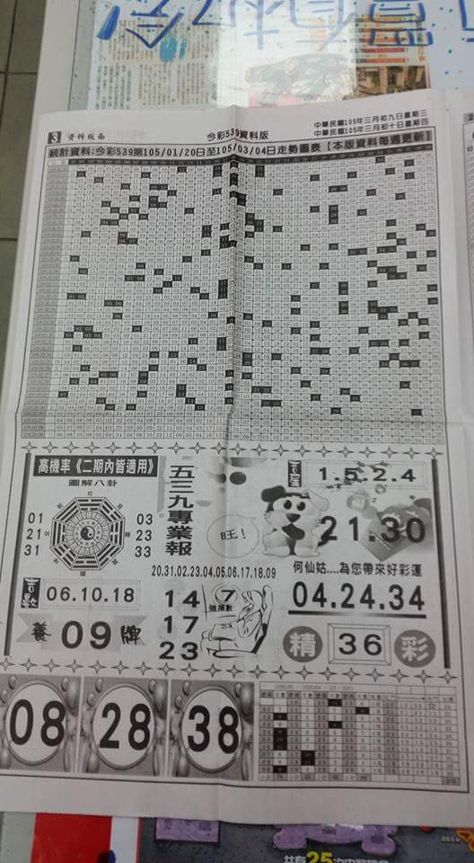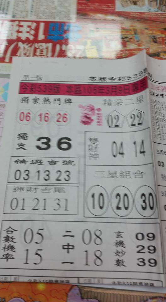 今彩539 2020/10/06 台北鐵報分享 供您參考