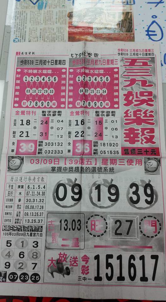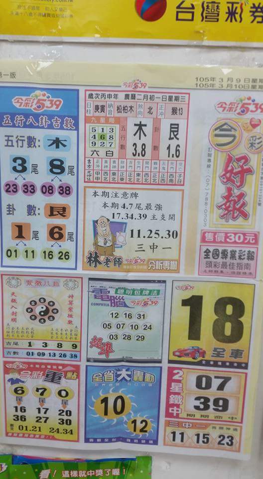 今彩539 2020/10/05 吉祥報分享 供您參考