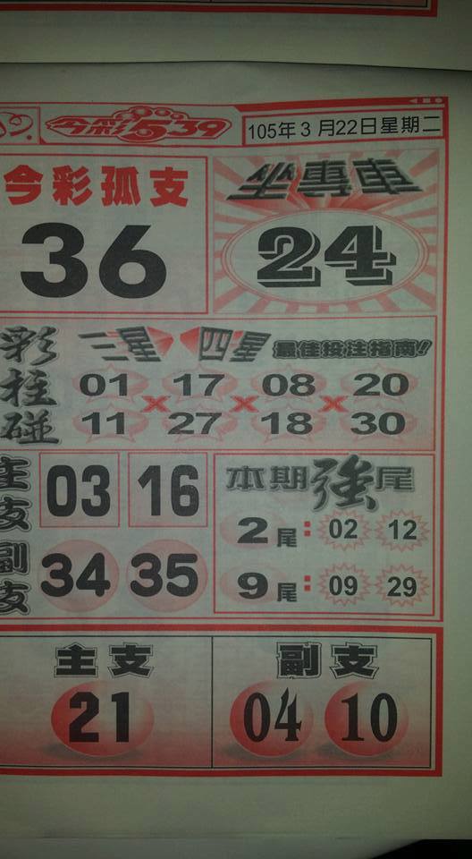 今彩539 2020/10/06 台北鐵報分享 供您參考