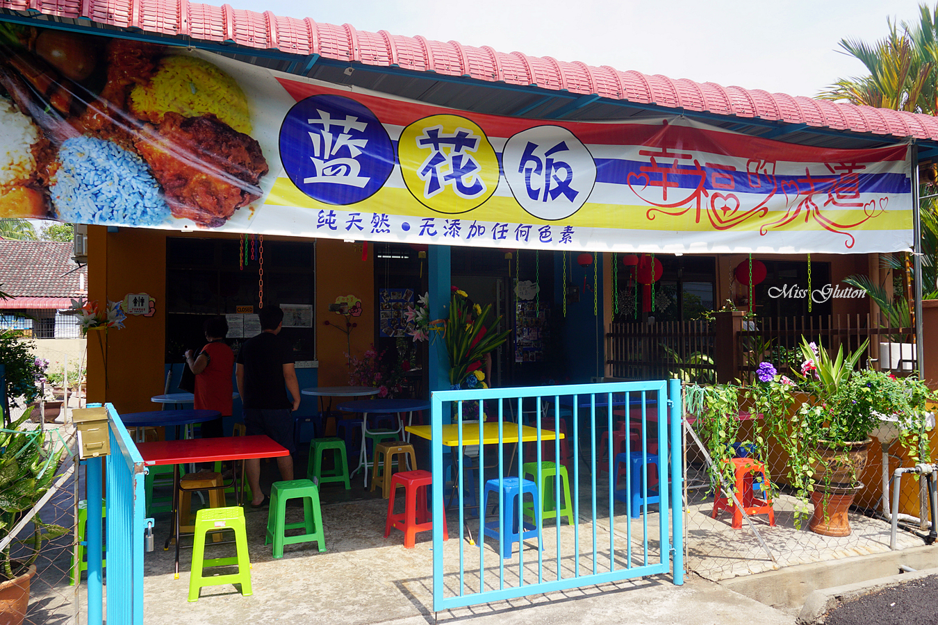 幸福的味道是在 Taman 里头的住家式餐馆,虽然我是亚罗士打人但毕竟生活在槟城有好几年了对于家乡的路难免有点陌生,所以我们只好跟着店家在脸书专页上提供的 google maps~ 果然有着 google 大神的相助我们很快就抵达目的地了!!!看到脸书上人家 share 的 post 说他们是 11点开店的,我们抵达的时候是 11:17pm 可是还没营业哦,负责人跟我们说其实是 12点才开始营业不过为了好吃的蓝花饭所以我们还是坚持要等开店,贪吃的毅力是很坚强的 ;)