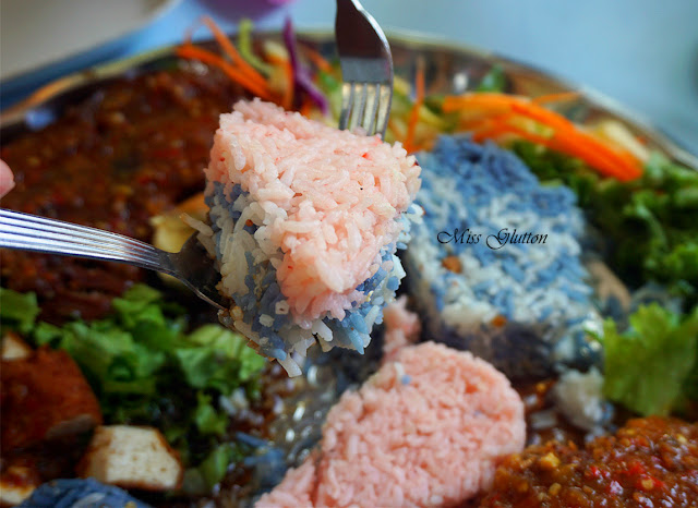 虽然槟城现在也有专卖店在卖蓝花饭但我还是决定回到家乡来一盘幸福的味道,毕竟家乡有这么棒的美食让外地人慕名而来,身为在地人的我怎么说也是要来支持支持 =D 一开始想要吃蓝花饭的欲望并没有很强,毕竟看起来只是好像 Nasi Kandar 那样,恰巧我又是不会特地要吃 Nasi Kandar 的人... 不过某某人就对它很有兴趣,还在脸书上转发然后 tag 我要一起去,于是贪吃二人组 +1 (我老妈) 就出动啦,所以说和胖子当朋友 / 情侣是瘦不下来的,总是在互相陷害啊?!!