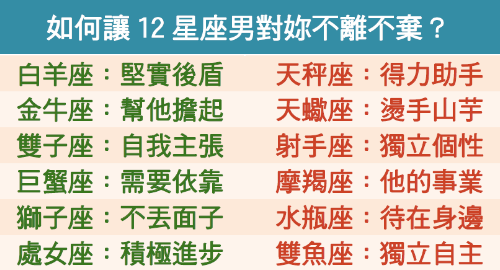 關於戀愛的結局,很多時候讓人無奈,有人遭遇七年之癢,有人熬過了八年抗戰仍不見明朗,情愛讓人心慌,不要被動坐以待斃,馬上看一看,怎樣讓你的星座情人對你不離不棄,他內心深處想要什麼樣的女人,你做到了嗎?