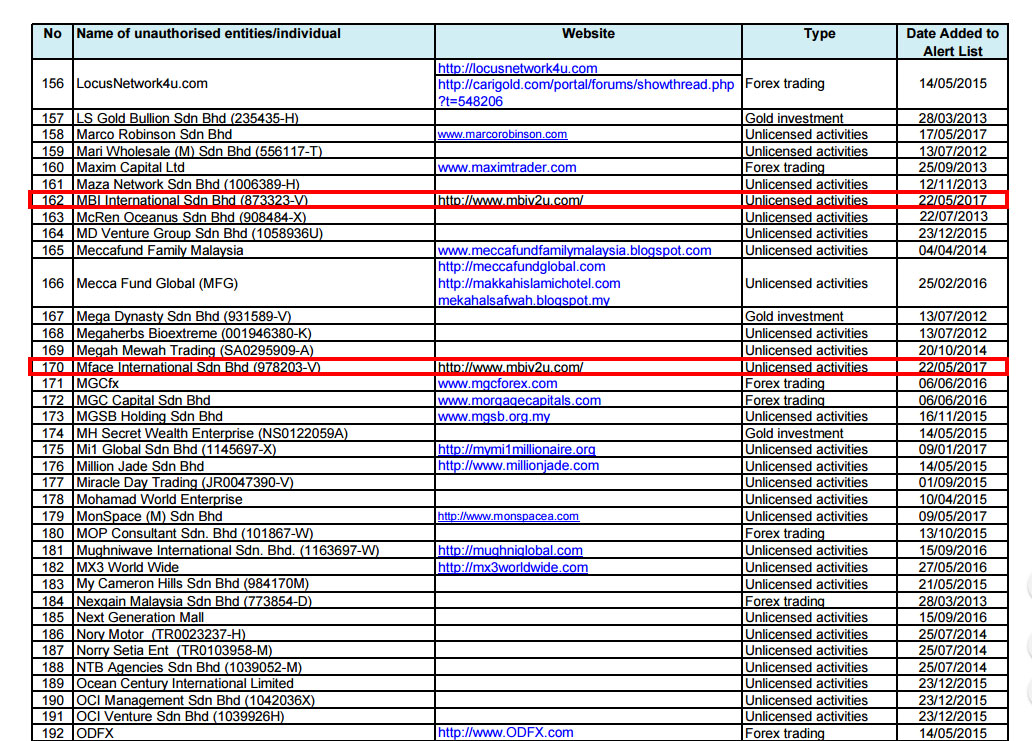 MBI和M Face被国行列入最新的《金融消费者警示名单》中。