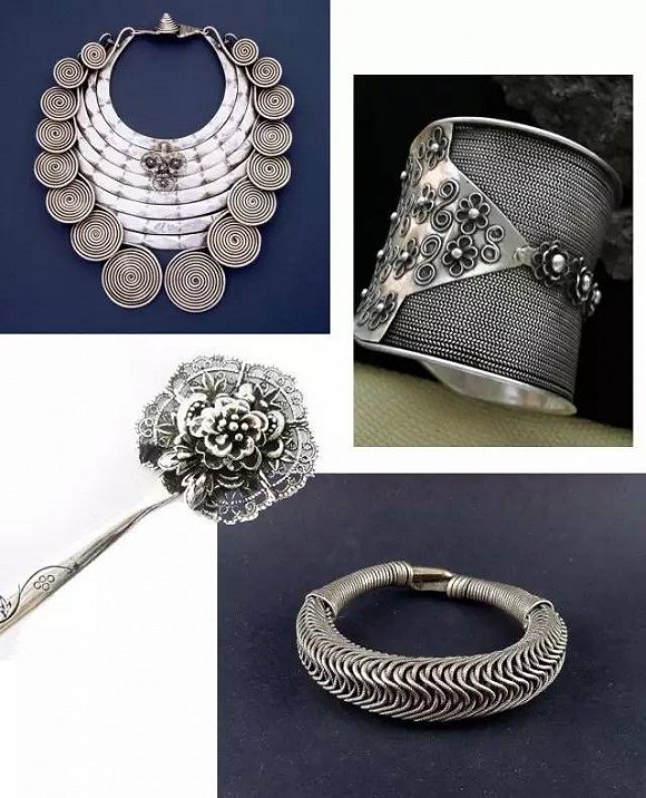 銀飾鑄造中的拉絲工藝很耗眼力,有些銀匠不到40歲,便得帶上老花眼鏡。另外,苗族銀飾在造型上一經確定形制,即不可改動。 在凱裡下高鐵,再花個把小時,走上40公裡路,便能到達西江鎮。這裡有著名的千戶苗寨,當地苗族姑娘的銀飾與別處相比,也顯得格外精緻。當地苗族銀飾鍛制技藝已經被列入國家非物質文化遺產的首批名錄。