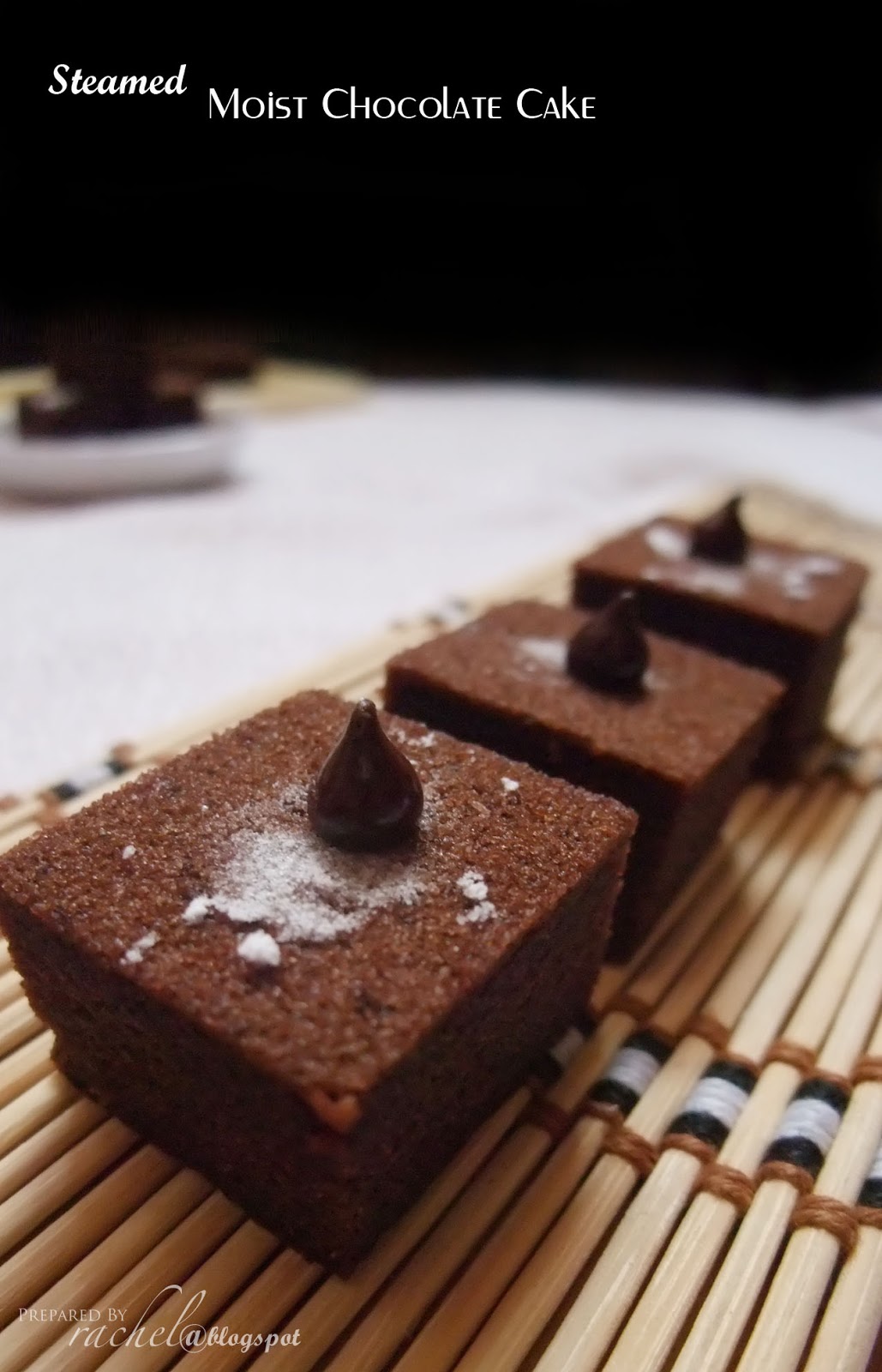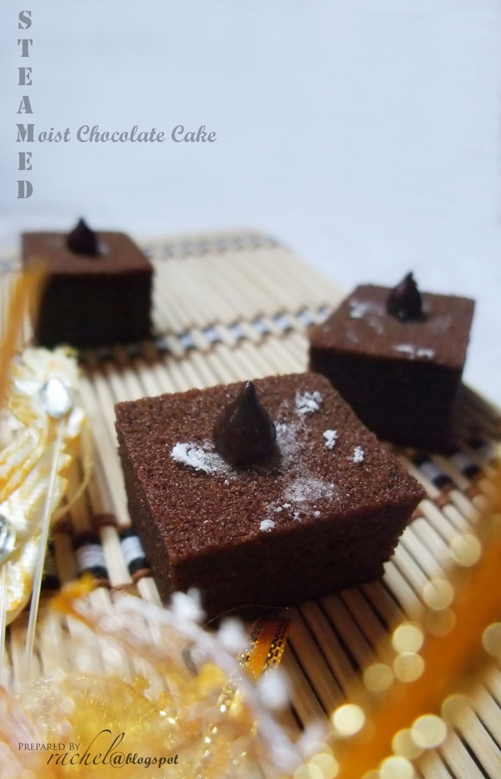 《 蒸潤濕巧克力蛋糕 》把它切成了小方塊 ,再撒上糖霜加上巧克力粒,小孩看了就樂得要爭著吃!