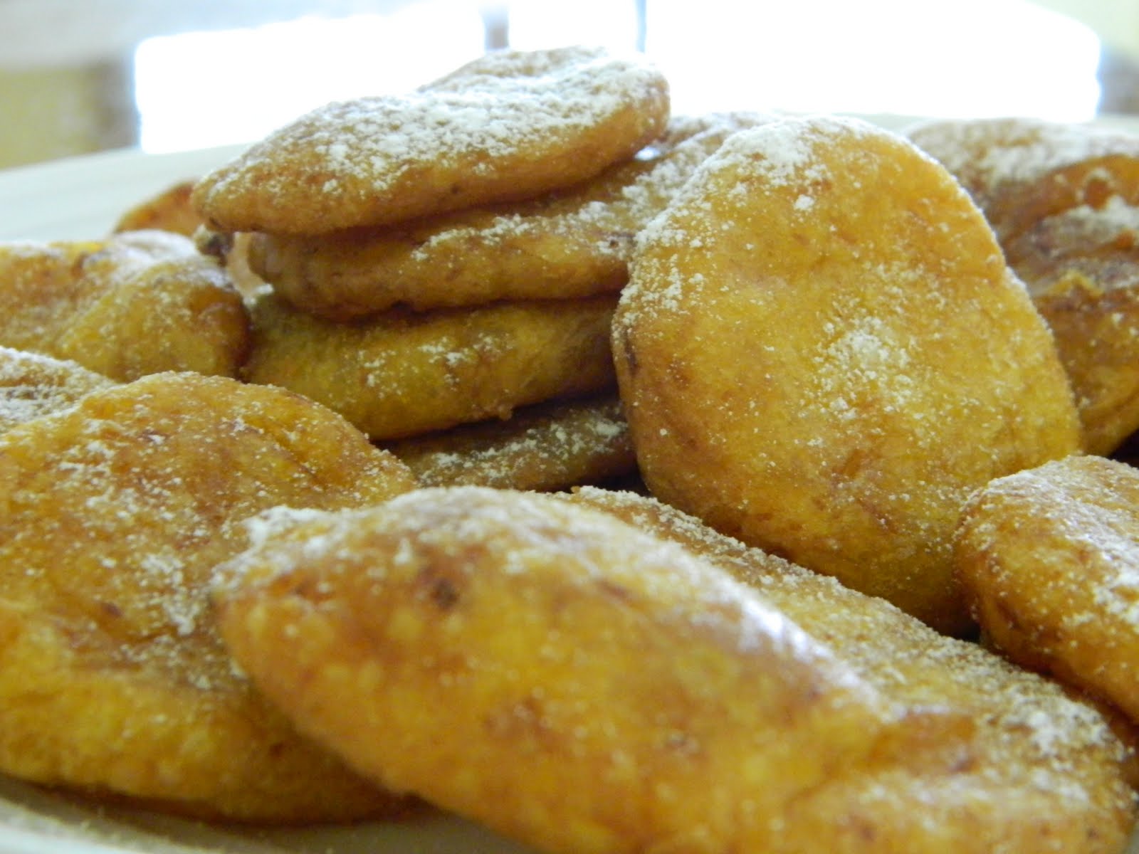 4)把鍋開熱,加入油,把番薯圈炸成金黃色勞起 趁熱灑上細紗糖便可