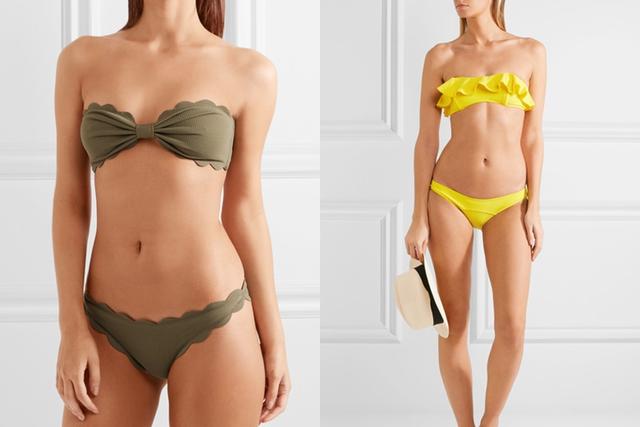 手臂粗:Off-shoulder款式絕對是遮掩手臂的良物。但如果想試試傳統三點式,但又不想展露太多肌膚,外加一件輕薄罩衫就絕對沒有錯!