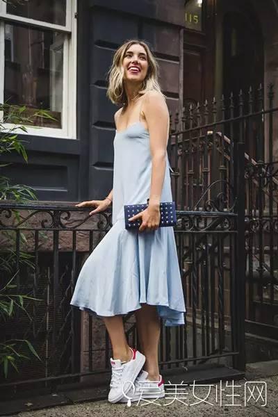 而且連衣裙+球鞋幾乎沒有什麼禁忌,這裡有一些不同感覺的造型,大家啟發一下靈感吧。