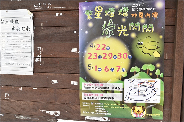 下一站內灣火車站,出了火車站就是內灣老街,現在也是2017螢火蟲季,假日有賞螢導覽和解說服務。