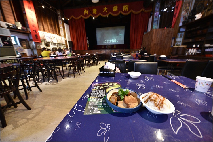 來內灣老街一定要吃個客家菜再閃人,如果沒有特別覓食目標的話,我們家會來內灣戲院用餐兼包場看老電影。內灣大戲院內部以客家人文風味餐館方式經營,只有用餐客人能入座看戲,因為不開放一般遊客參觀,所以隔絕了內灣老街的喧嘩。