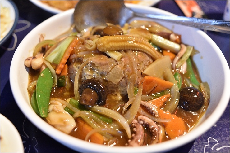 這次點的炒板條、豬油飯、炸彈開花(類似炸蛋蔥油餅)、梅干扣肉和阿嬤孝順菜(古早味辦桌菜/中間的芋頭肉好吃!),桌菜口味中規中矩,都是不錯的下飯菜,賣點還是在用餐環境啦!
