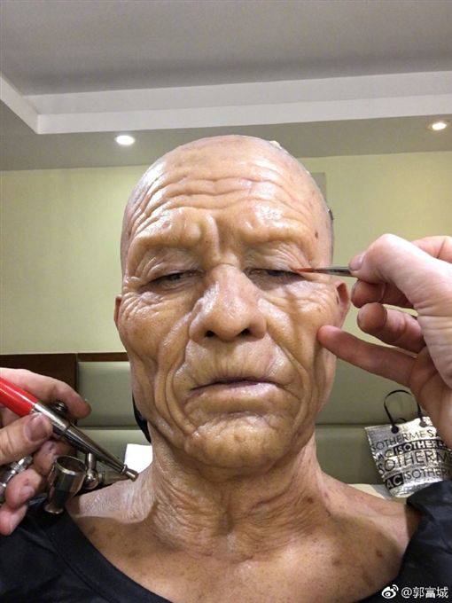 郭富城今(3)日在微博貼出驚人的美術特效照,敬業的他足足花了5個小時,畫成滿臉皺紋的乞丐老人,面目全非讓人認不出來是城城,他也貼出上半身全裸,被吊起來打的照片,只見畫面皮開肉綻,效果十分逼真,網友大讚他不愧是影帝,演什麼像什麼。