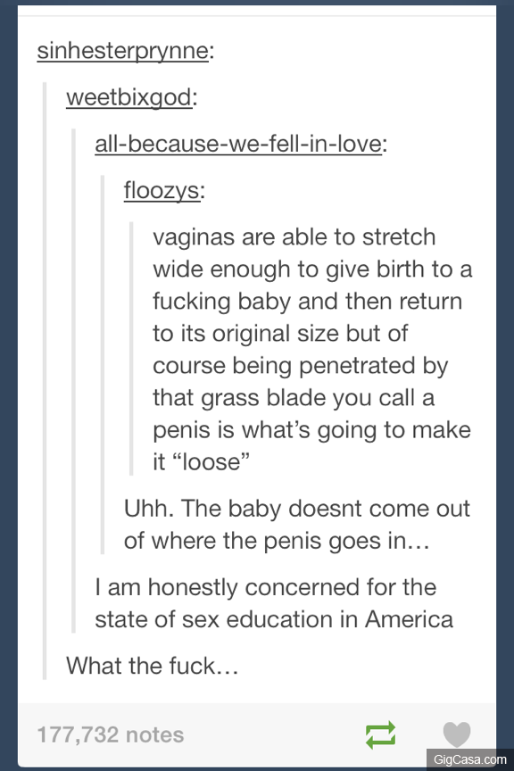 14. 網友1:「陰道強大的伸展性能在生產時讓一個嬰兒通過,接着會恢復原本的大小,但是被GG穿過當然會讓它『鬆』」網友2:「呃,寶寶不是從GG進去的地方出來好嗎…」