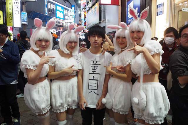 日本網友高野りょーすけ實驗性地穿上寫有童貞(處男)兩字的T恤參加萬聖節派對,意外吸引大量路人搶著合照,其中也包括不少身材姣好的正妹,對於處男而言簡直跟做夢一樣啊!