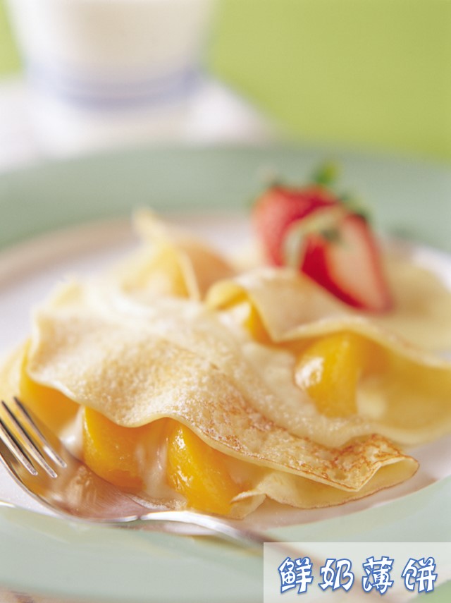 鮮奶薄餅材料 (A):低筋麵粉 75克,細砂糖 12克,全蛋 1個,牛奶180克,奶油 20克,味霖 10克