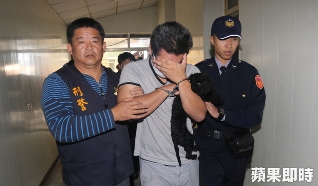 陳女的其中一名男友溫嫌堅持抱狗接受訊問。資料照片