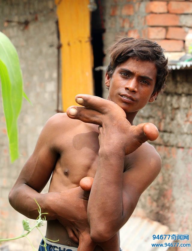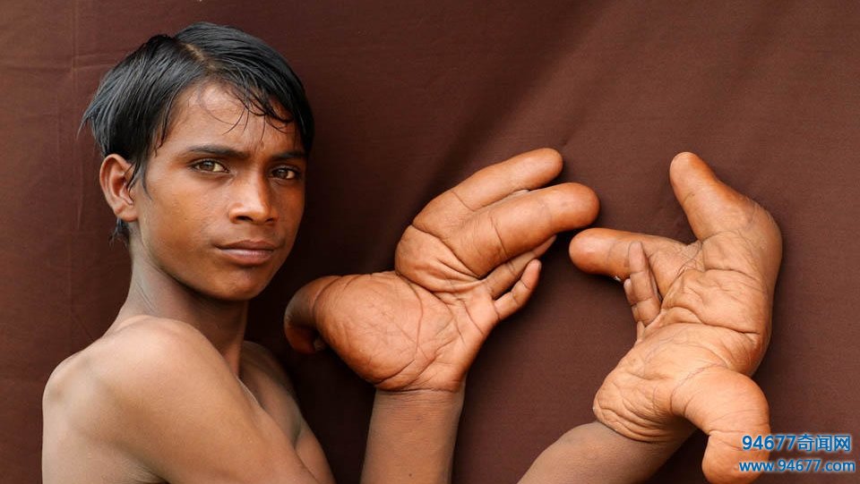 來自印度北方邦的塔裡克(Tarik)引起了人們的關注,他擁有兩隻碩大無比的手掌。據家人介紹,12歲的塔裡克自誕生以來就有了“大手”。