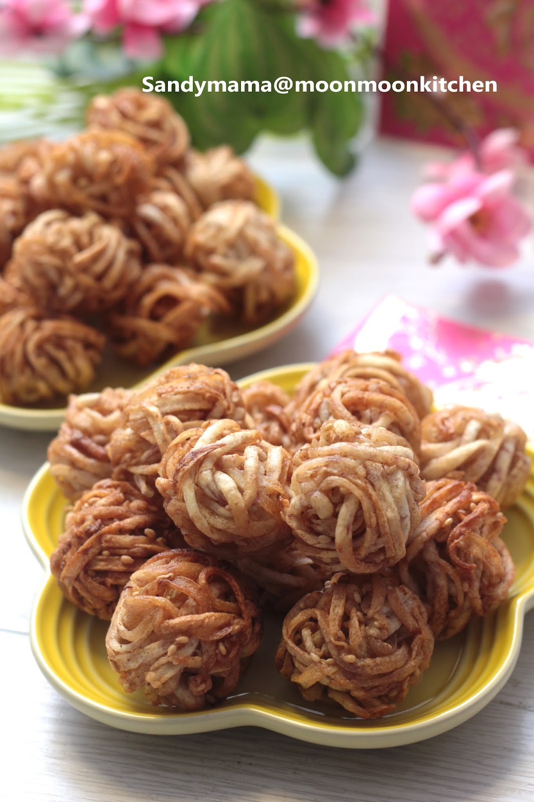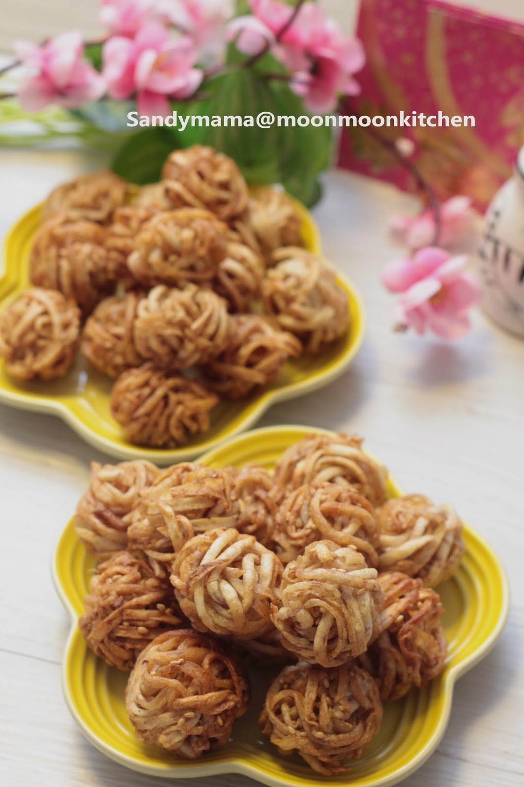 4.油熱後,調至LOW,用快子放入適量芋絲,旋轉筷子,令芋絲略成球形。