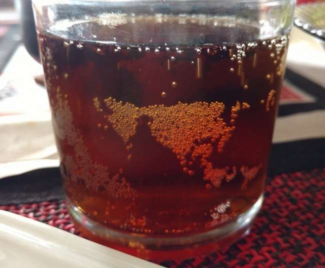 ▼酒杯裡的地圖。