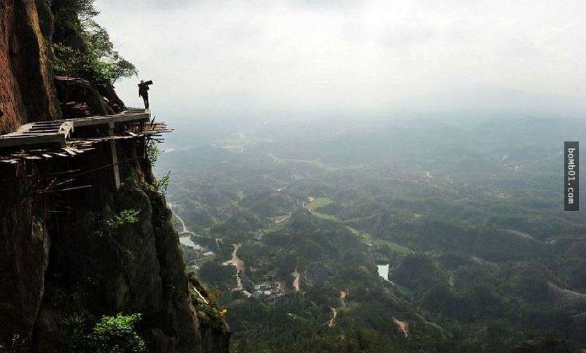 ▼這個棧道幾乎垂直,想走在這個道路上你最需要的就是勇氣。