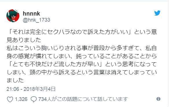 也希望能夠藉由自己的經驗在推特擴散而讓這類的性騷擾行為可以徹底從世界上消失。