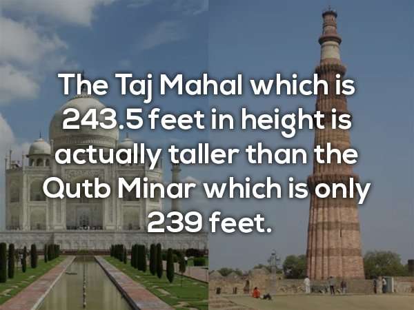 ▼泰姬瑪哈陵高度為243.5英呎(約74.2公尺),比239英呎(約72.8公尺)的古達明納塔還要高。