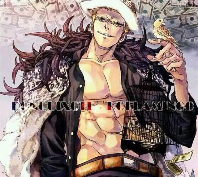 多弗朗明哥所代表的动物是一只鸟,火烈鸟。明哥的大眼镜再加上蓬松的火红大衣,俨然一只开屏的鸟。一般来说,火烈鸟这种动物生性孤傲、高冷,像极了明哥的个性。明哥原是高高在上的天龙人,如今堕落凡尘成了平常人,但他依旧是冷酷味十足,高高在上。