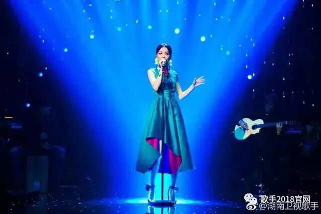 除了黑白红三种颜色的造型之外,张韶涵还尝试了湖蓝色的服装,搭配黄色耳环,颇有异域风情的感觉
