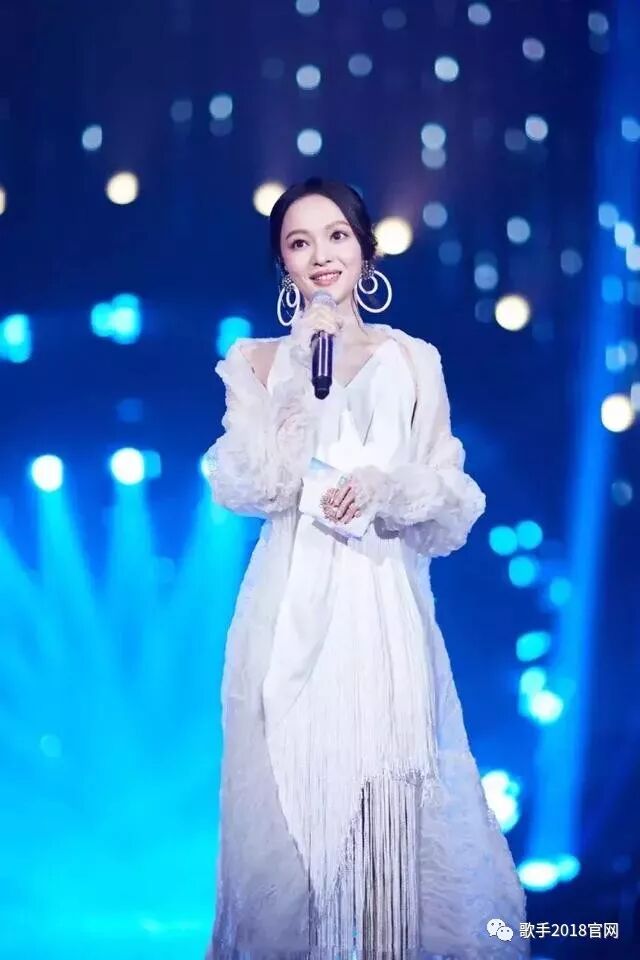 接着再来看张韶涵在舞台上的服装,首先来看各种白色造型为主的服装,这一袭白色仙女裙,搭配馄饨造型的耳环,真的是精灵公主本人了