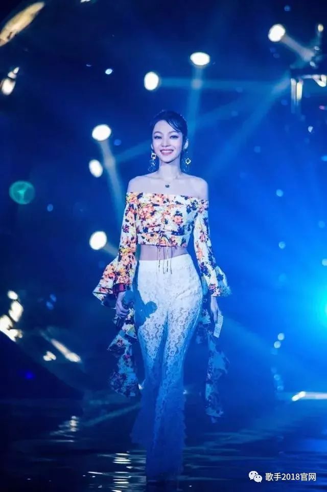 张韶涵身穿印花一字肩上衣,搭配白色裤子,尽显高挑,大概显高的秘诀就是上衣短一些,给人一种腰以下全是腿的感觉