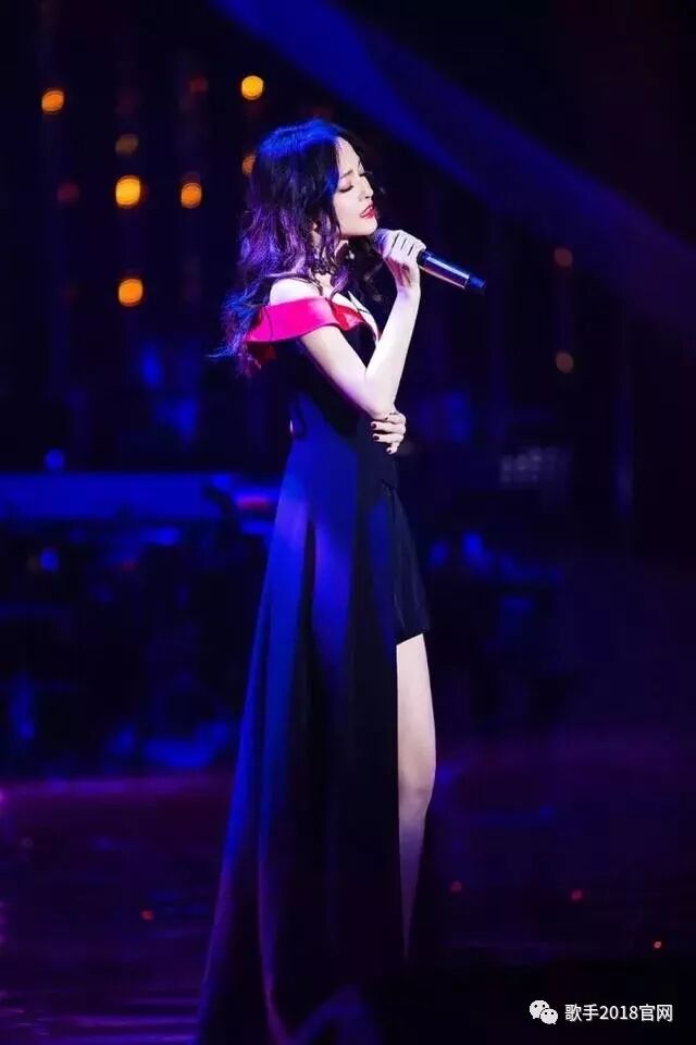 除了白色造型之外,张韶涵也不乏黑色礼服,一袭露肩黑色长裙,露出大长腿,一点不显矮