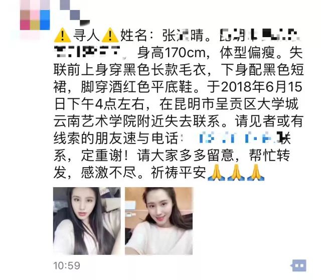 未婚夫在网上发布寻人启示,很多圈内好也都帮助转发,警察也开始积极搜寻,然而,最坏的结果终于还是发生了,16日晚,警方在学附近一条河道里发现了她的尸体。据初步调查,凶手正是理发店的老板,因为张遇晴之前在理发店办过储值卡,但老板拒绝接受储值卡消费,双方发生口角,最终酿成悲剧。