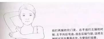 拍打方法:拍打兩腋的敲門時,右手拍打左腋的時候,左手向後彎曲,放在後腦勺部,這樣左腋即可完全暴露在外,方便拍打按摩。那麼左手拍打右腋時,方向顛倒即可。