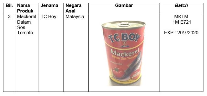 另外,King Cup、Bintang和TC Boy,3個同樣進口自中國的茄汁鯖魚罐頭牌子也被發現含有蠕蟲雜質。衛生部已經採取執法行動,並要求上述產品公司撤下市面上的所有產品。衛生部將繼續監控所有進入我國和在市場上的入口沙丁魚和鯖魚罐頭產品,如發現不符合1983年食品法令,將採取執法行動。