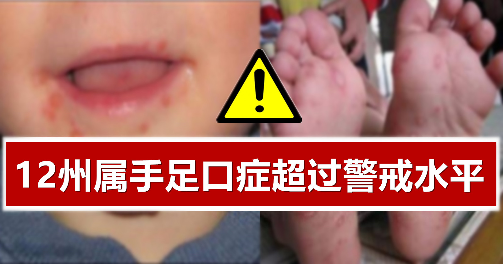 馬來西亞衛生總監拿督諾希山在文告中說,全國12州的手足口癥病例已超越警戒水平,柔佛、沙巴及砂拉越除外。警戒水平是指最近5年手足口癥的平均病例,並根據各州不同的病例作評估。