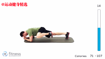 B.腹部內收,重心放於手臂及腿部,臀部上抬,軀干抬離地面向上伸展直至手臂伸直。