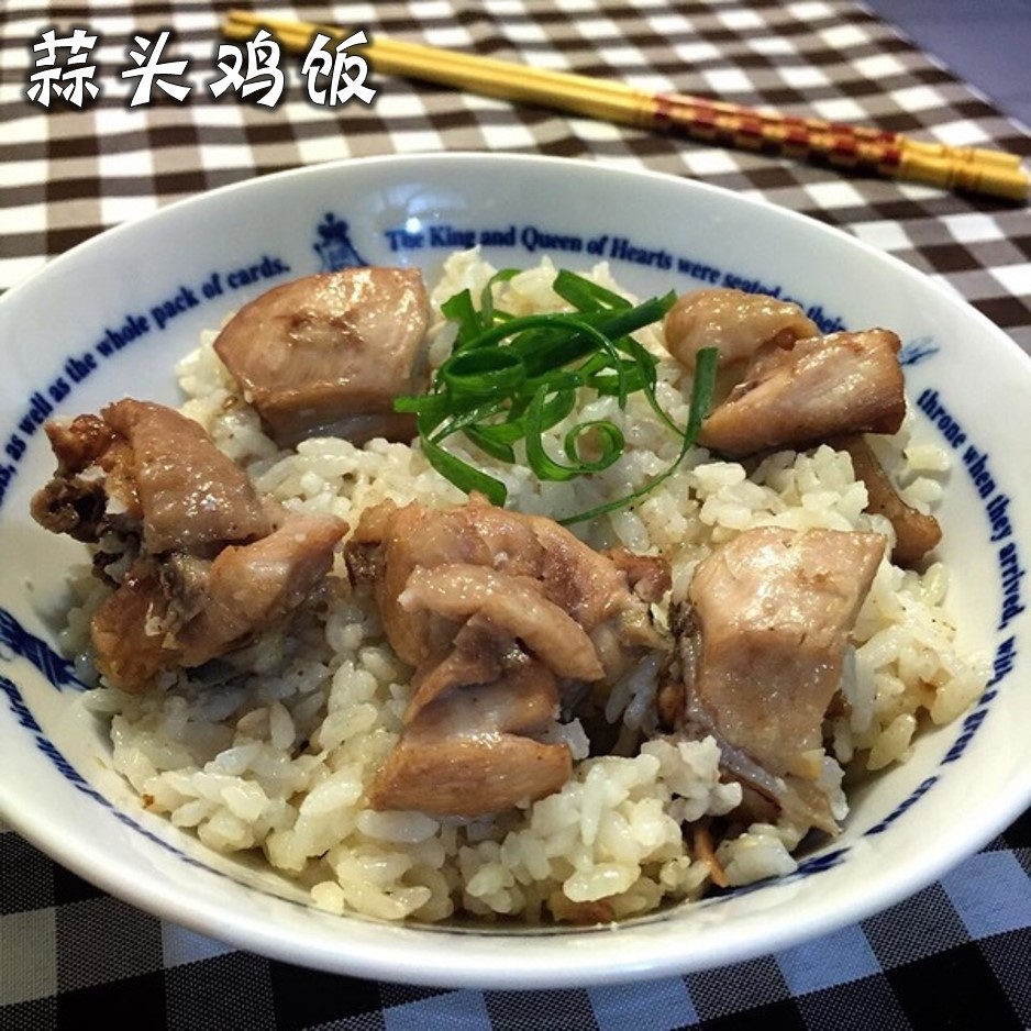 材料:雞腿(切塊)1個,白米 2米杯,鹽 適量,蒜頭 20顆